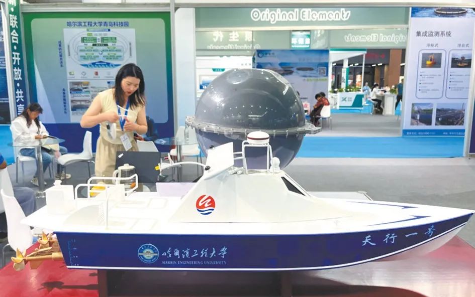 Argo浮标是用于建立全球海洋观测网的一种专用测量设备,形象地说,就是人类观察海洋的“触手”“眼睛”和“耳朵”。此次海博会,青岛海山海洋装备有限公司带着自研的 HM2000型 Argo浮标参展。“我们的产品可以从水表到水下2000米升降,并使用传感器采集海水的温度、盐度、深度等数据,实时传输观测数据和信息。工作寿命不少于100个剖面,可在海中连续工作2年~3年,具有极强的稳定性,能够为科学研究提供精准的数据支撑。希望通过海博会平台,达成更多合作意向。”该公司工程师徐兴洲介绍。