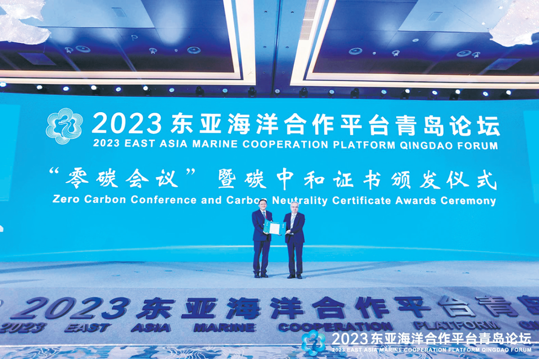青岛论坛获颁“零碳会议”证书。青岛西海岸新区工委宣传部供图