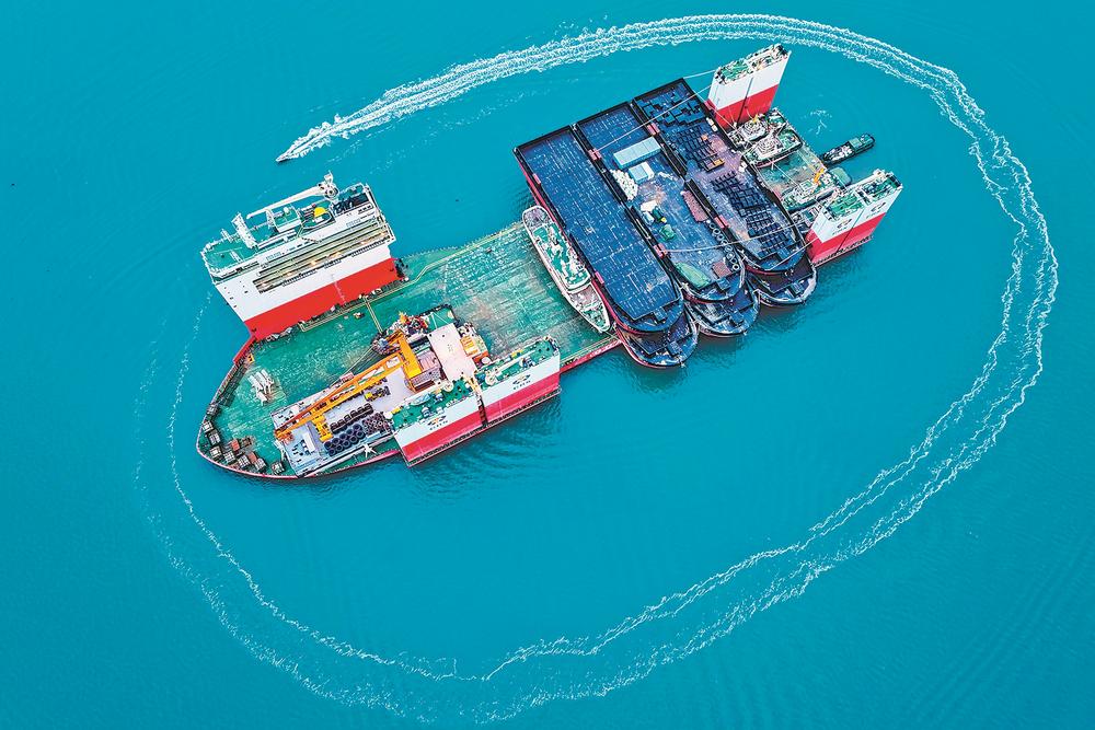 据了解,“华瑞龙”轮总长252米,型宽60米,型深14.8米,航速最快达15节。它不仅是全球第三大半潜船,也是亚洲第一艘无常规艏楼、四岛式设计的新型打捞工程船,主要用于大型船舶的应急抢险打捞,兼顾海洋石油和天然气勘探、开采所需大型海上装备、大型船舶的装载和运输等业务。此次作业是“华瑞龙”轮在宁德辖区水域的第二次装载作业,也是今年最大批次的组合式装载作业。