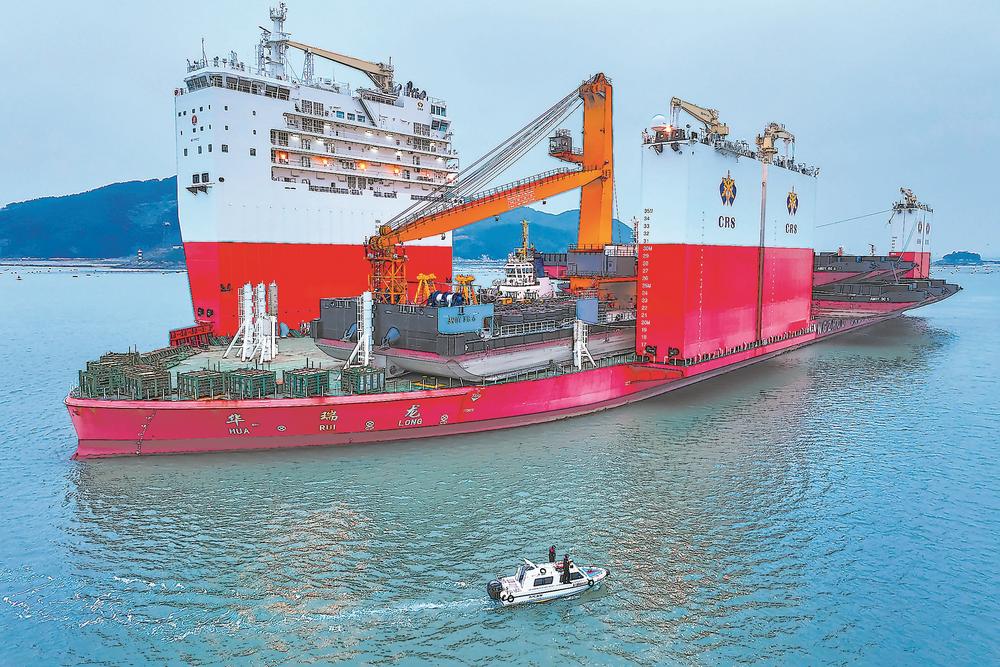 福建日报讯 (记者 尤方明 通讯员 余汕康) 25日上午,在宁德三都澳灶屿水域,全球第三大半潜船“华瑞龙”轮装载价值约2.5亿元的13艘工程类船舶,计划于28日启程出海,前往非洲几内亚。