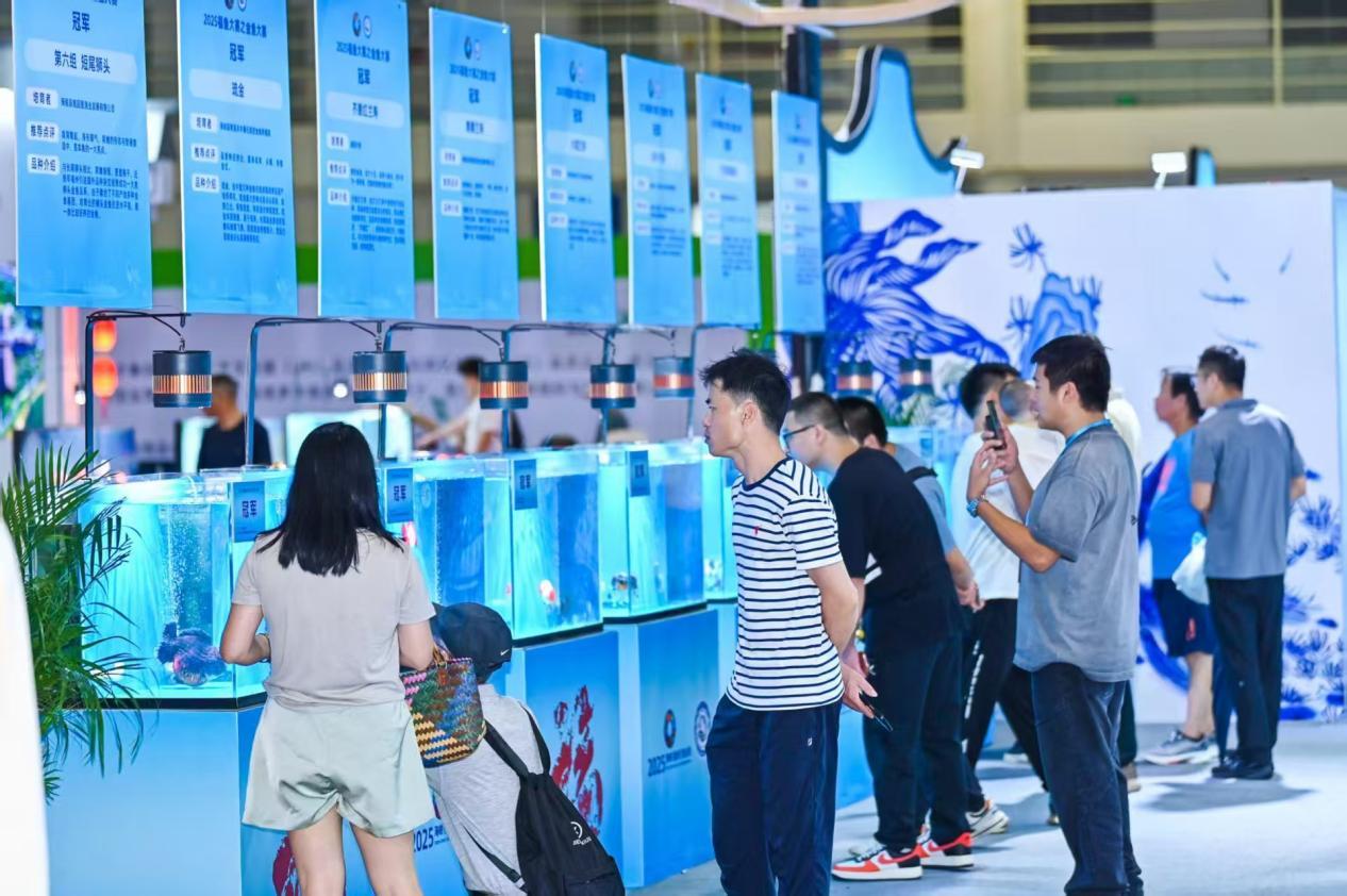 值得一提的是,2025福鱼大赛在展会期间成功举办,并首次设置小型观赏鱼比赛环节,包括福州首届观背青鳉大赛和斗鱼大赛。此外,福州金鱼工美创作大赛将福州金鱼与非遗技艺漆器、木雕、寿山石雕等有机融合,为传统文化创意产业开辟了新赛道,也推动了渔业文化特色IP的打造。市民们在欣赏获奖金鱼灵动之美的同时,还能近距离品鉴以福州金鱼为主题的大师级工艺美术作品。