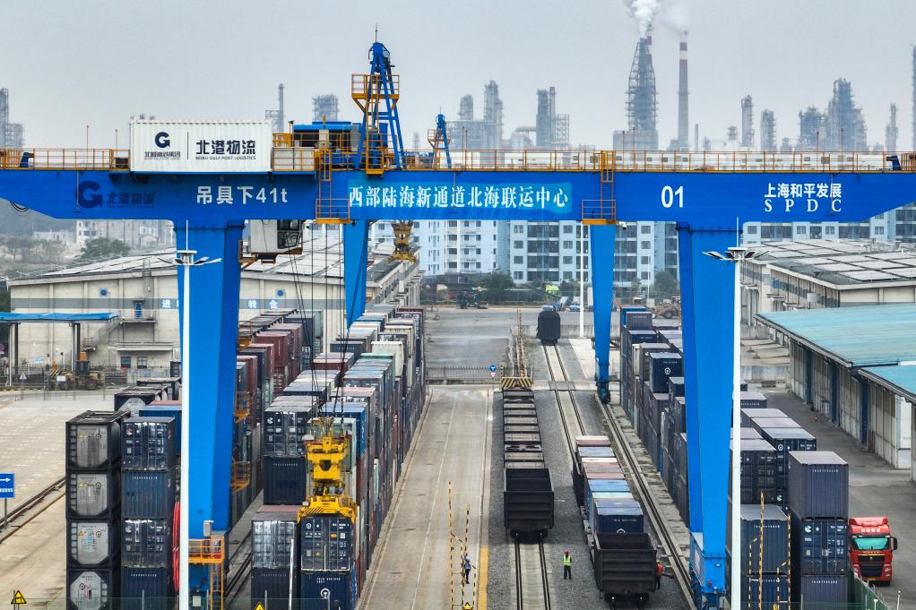4月7日,在广西钦州港码头泊位,一艘滚装船在进行装船作业。新华社发 近年来,随着西部陆海新通道建设不断推进,企业借助沿线地区的资源和物流体系优势,积极布局玻璃相关产业。企业将青海纯碱通过铁路等方式运至广西、重庆等地支持当地玻璃产业;广西、重庆制作的玻璃又通过铁路、公路等方式运至西部地区,助力整车制造、光伏、建筑等产业发展。同时,企业通过广西北部湾港就近出海或者国际铁路联运班列,走向更广阔的世界市场。 4月17日,在重庆国际物流枢纽园区,转运卡车在陆海新通道重庆无水港转运装有玻璃制品的集装箱(无人机照片)。新华社记者 黄伟 摄 4月18日,在位于重庆市永川区的一家玻璃生产企业,智能机械臂将生产好的浮法玻璃从生产线上转放至货架上,等待搭乘西部陆海新通道班列发运。 新华社记者 黄伟 摄 这是4月17日在重庆国际物流枢纽园区拍摄的团结村中心站、兴隆场编组站和陆海新通道重庆无水港(从左至右,无人机照片)。新华社记者 黄伟 摄 在位于广西北海市铁山港(临海)工业区内的一家玻璃生产企业,工作人员对玻璃半成品进行加工处理(3月13日摄)。新华社记者 曹祎铭 摄 4月18日,在重庆市永川区,一家玻璃生产企业的工作人员在原料车间码放依托陆海新通道从青海运输过来的纯碱。新华社记者 黄伟 摄 在位于广西北海市铁山港(临海)工业区内的一家玻璃生产企业,工作人员将玻璃成品装进准备运往国外的集装箱(3月13日摄)。 新华社记者 曹祎铭 摄 4月18日,在重庆市永川区,一家玻璃生产企业的工作人员在成品车间吊运即将通过西部陆海新通道发货的镀膜玻璃。新华社记者 黄伟 摄 这是位于广西北海市铁山港区的西部陆海新通道北海联运中心(3月13日摄)。 新华社记者 曹祎铭 摄 这是4月15日在广西北海市铁山港(临海)工业区内拍摄的一家企业。新华社记者 曹祎铭 摄 在位于广西北海市铁山港(临海)工业区内的一家玻璃生产企业,工作人员对成品汽车玻璃进行质检(3月13日摄)。 新华社记者 曹祎铭 摄