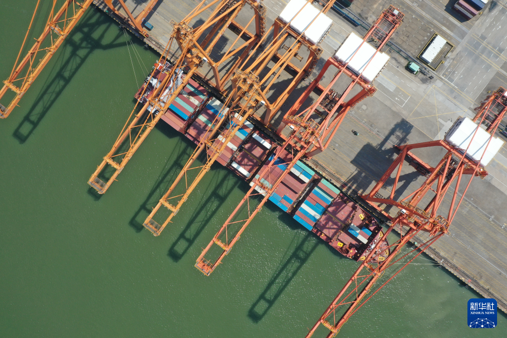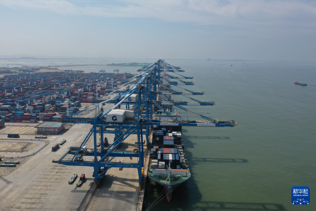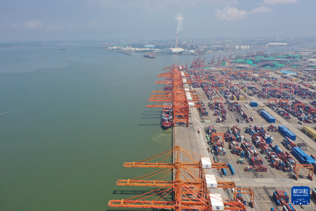 这是北部湾港钦州港区集装箱码头。(7月26日摄,无人机照片)