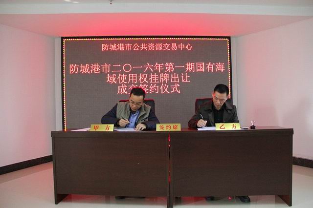 12月23日上午,防城港市海洋局在防城港市公共资源交易中心完成防城港市港口区公车镇毗邻海域的一宗海域使用权挂牌出让工作。广西盛隆码头有限公司以1618万元成交价获得该次挂牌出让海域使用权资格。这是防城港市第一宗挂牌出让的海域使用权,此项工作的完成,开创了防城港市国有海域使用权出让市场化的历史。