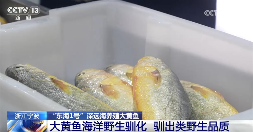 那从这儿养殖出来的大黄鱼都有哪些特别之处呢?首先要告诉大家的是,“东海1号”还有一个特别的名字,叫大黄鱼野生驯化基地。大黄鱼来到这儿之后,因为海里的洋流更加汹涌,所以它需要不停地游动。工作人员告诉记者,大黄鱼来到这儿,驯化两个月之后就可以达到类野生的品质。