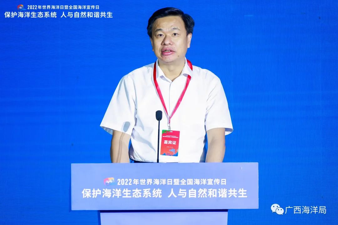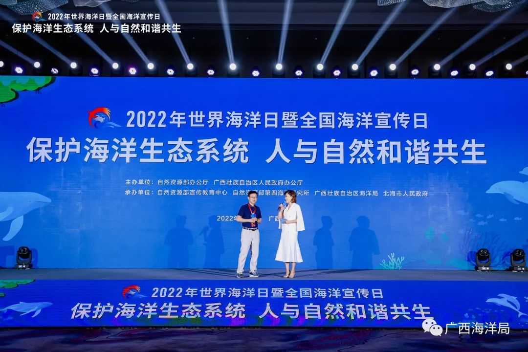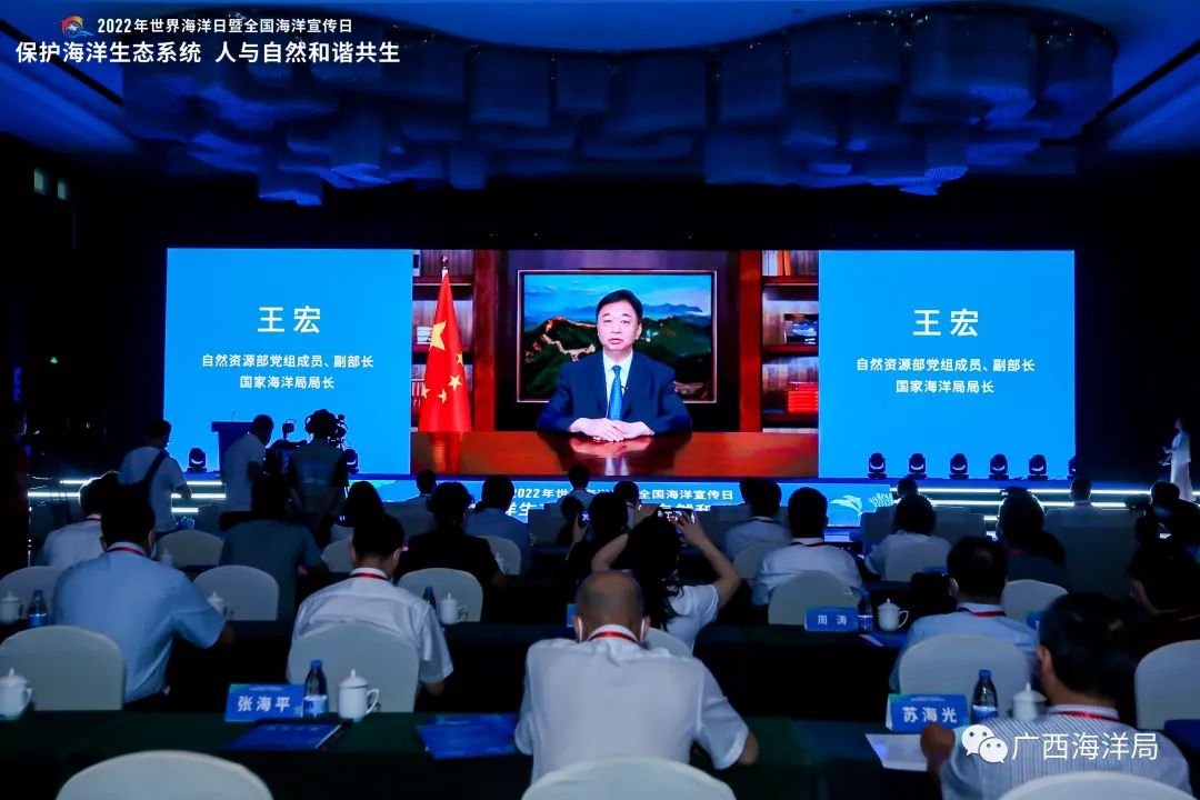 今年6月8日是第14个“世界海洋日”暨第15个“全国海洋宣传日”,主题是“保护海洋生态系统 人与自然和谐共生”。当天,海洋日主场活动在广西北海举行,自然资源部副部长、国家海洋局局长王宏以线上视频方式发表致辞,广西壮族自治区党委常委、副主席许永锞在活动现场发表致辞,北海市委副书记、市长李莉致欢迎词。自然资源部总工程师张占海、有关涉海单位和广西区相关单位代表参加主场活动。