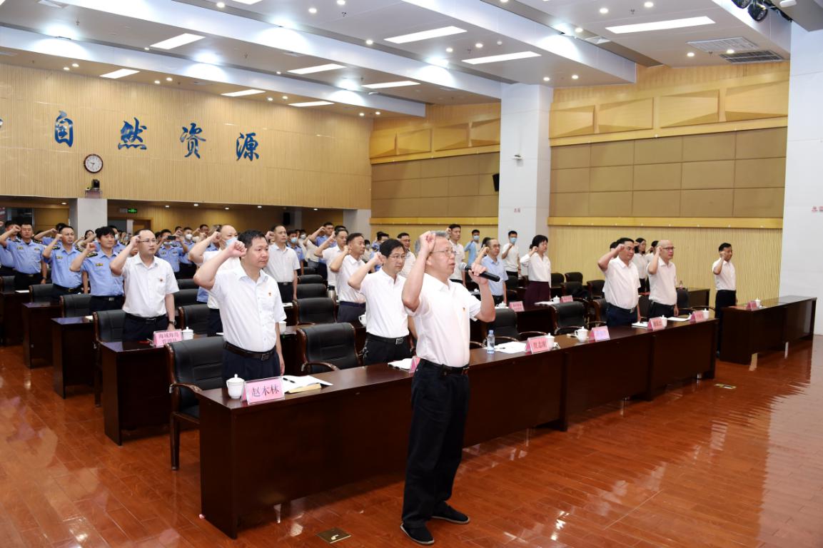 局党组书记贺志刚同志带领全体党员共同举起右拳,面对鲜红的党旗,庄严宣誓。