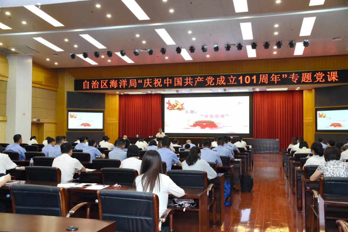 为庆祝中国共产党成立101周年,推动党史学习教育常态化长效化,进一步增强广大党员干部爱国爱党热情,6月30日上午,自治区海洋局举行“庆祝中国共产党成立101周年”纪念活动,局机关和直属单位全体党员、干部职工参加活动。