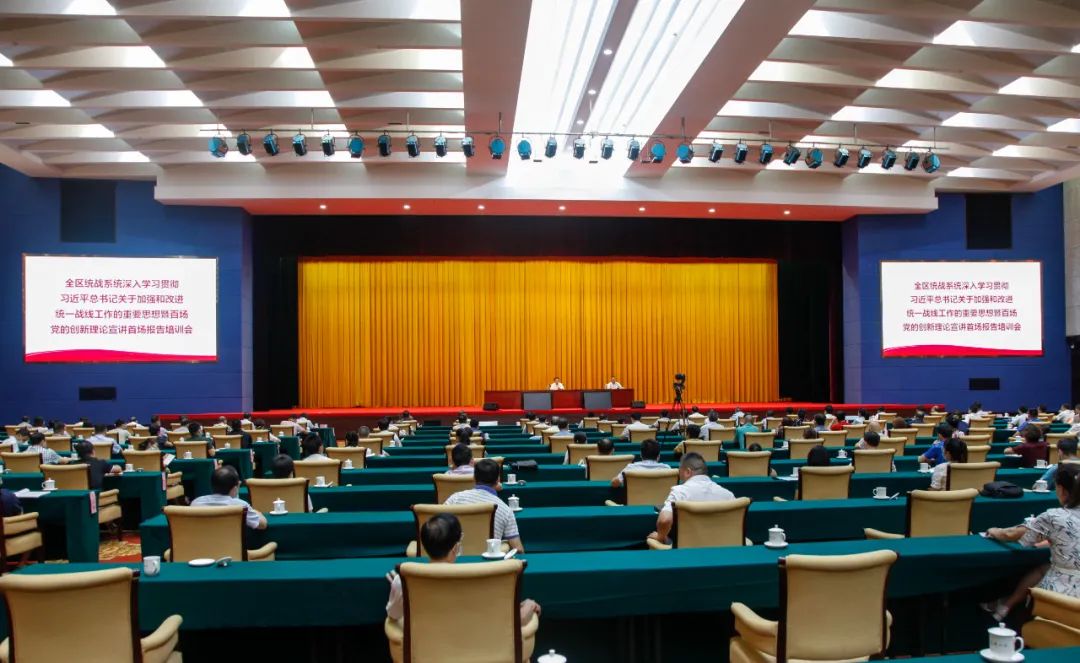 2020年,全区统战系统开展百场党的创新理论宣讲活动,深入学习贯彻习近平总书记关于做好新时代党的统一战线工作的重要思想。图为首场宣讲报告会现场。