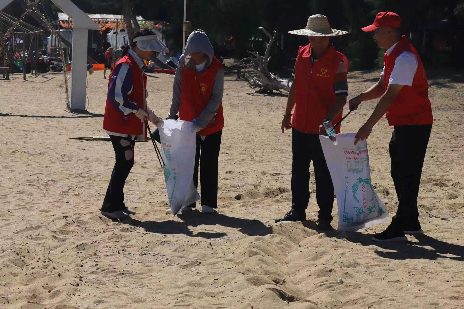 景区道路沿线还设置有“艺术启蒙变废为宝”、“你守护我奖励”两个游戏点,通过趣味横生的游戏吸引周围居民和游客积极参与到捡拾海滩垃圾活动中。身穿红马甲的志愿者们工作热情满满,前来旅游的游客不禁投来赞赏的目光,有的游客主动加入志愿服务中来,一起清洁海滩,一起徒步宣传。来自重庆的游客李先生提到:“志愿者们的行为让我们这些外地游客刮目相看,正是有了他们和景区的环卫工人的共同努力,才让我们游客欣赏到了海滩上的美景,不得不为他们竖起大拇指点赞!”