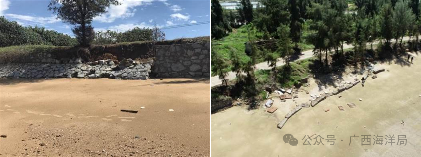 修复前:护堤受风暴潮、海浪侵袭崩塌损坏