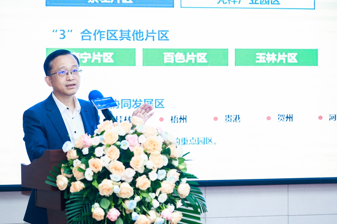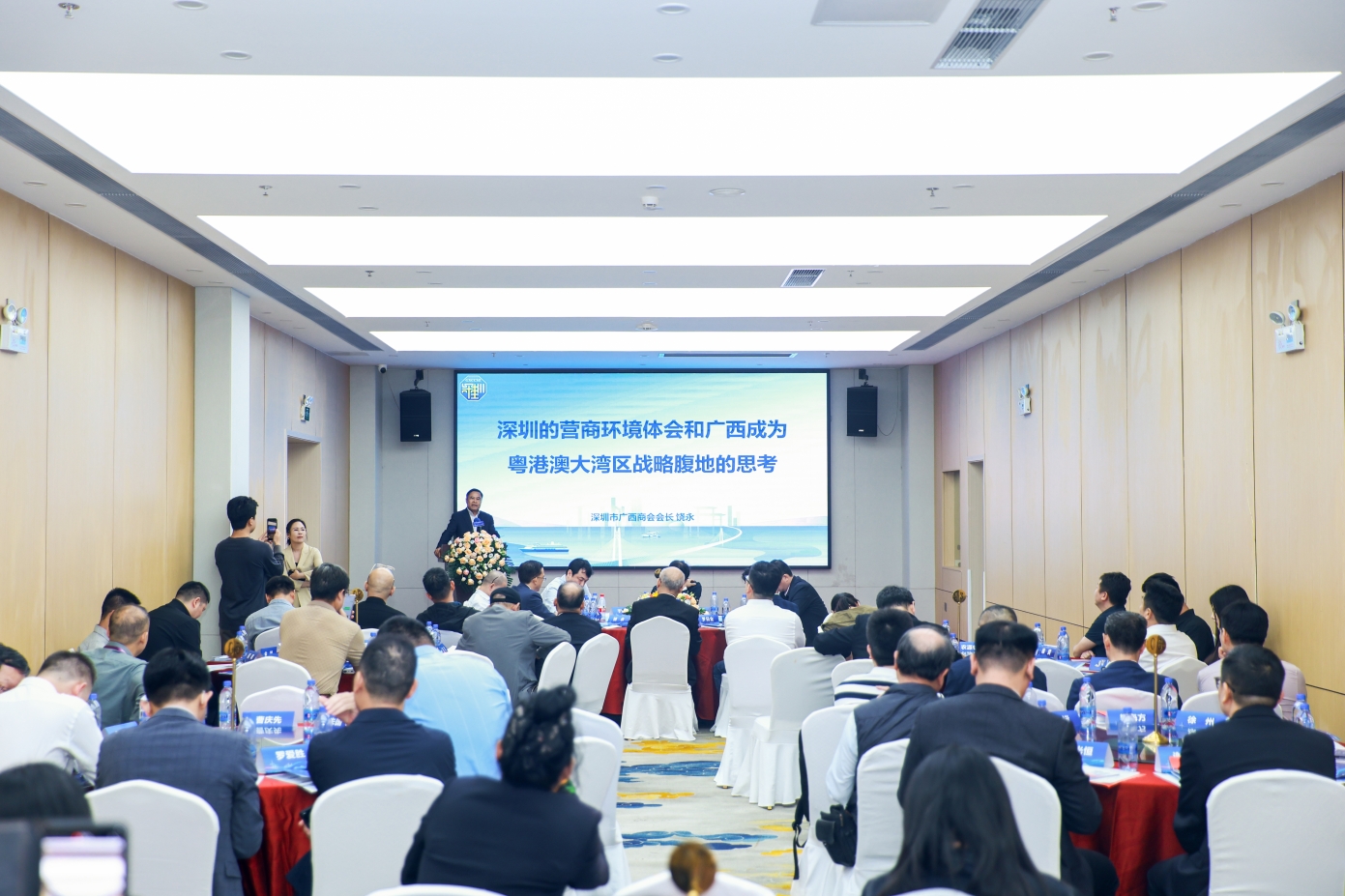 推介会上,自治区园区发展和投资促进服务中心,南宁市东部新城开发建设指挥部办公室、北海市铁山港(临海)工业区管委会、防城港市港口区人民政府、中国—马来西亚钦州产业园区管委会、玉林龙潭临港产业园区管委会等部门负责人对广西招商政策及服务等内容进行了精彩推介,为参会企业家提供了全面的投资参考。深圳市广西商会会长饶永围绕“深圳的营商环境体会和广西成为粤港澳大湾区战略腹地的思考”作交流分享。