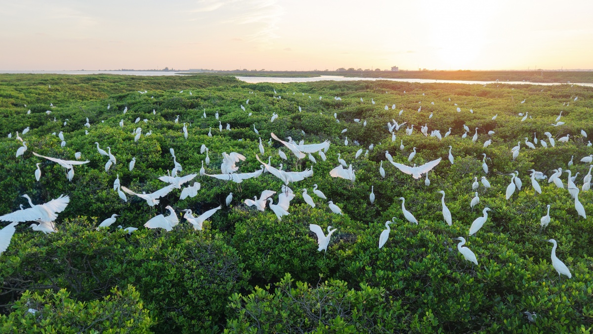 图为北海市合浦县沙岗镇七星村红树林湿地,数百只白鹭在此集结。通讯员 林启波 摄(资料图)
