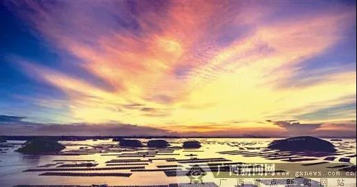 朝阳映照下,北部湾联排海水养殖场风光无限好。(谢彩文 黄启健 杨晓佼) 图源:广西新闻网
