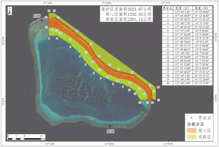 黄岩岛国家级自然保护区功能区划图。国家林业和草原局供图