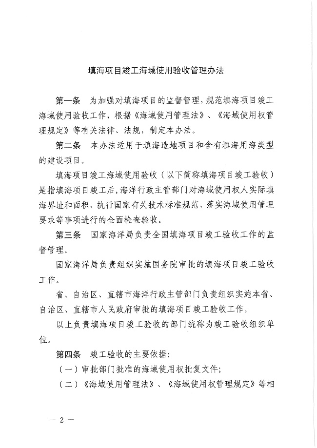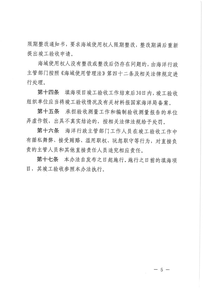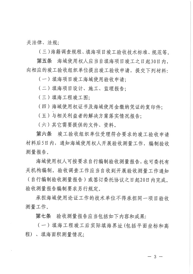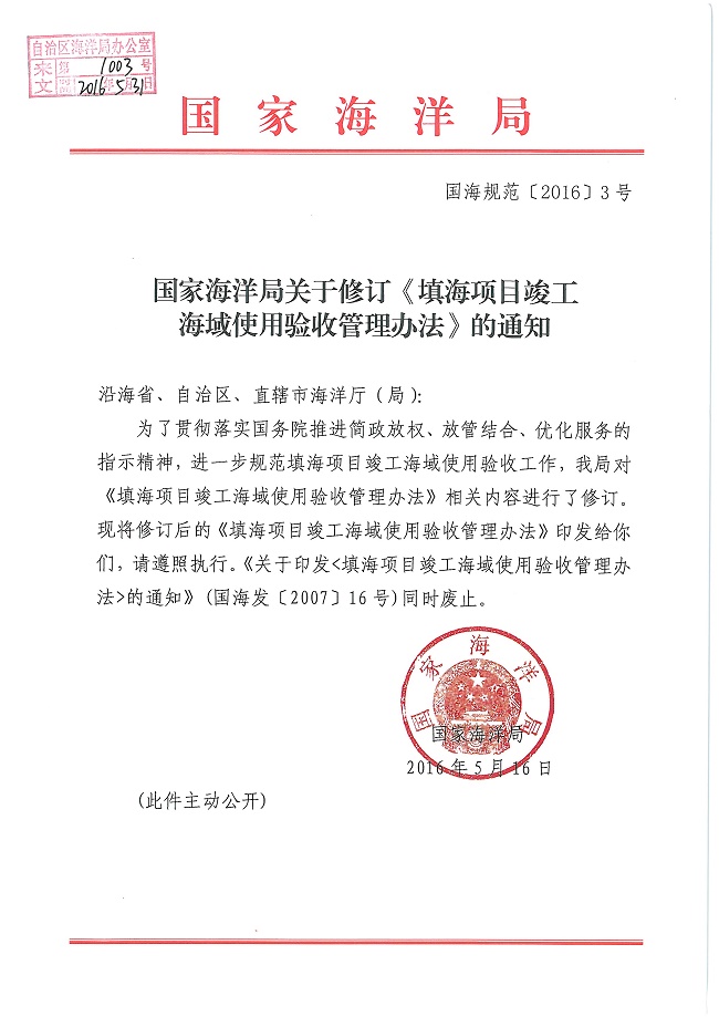 国家海洋局关于修订《填海项目竣工海域使用验收管理办法》的通知