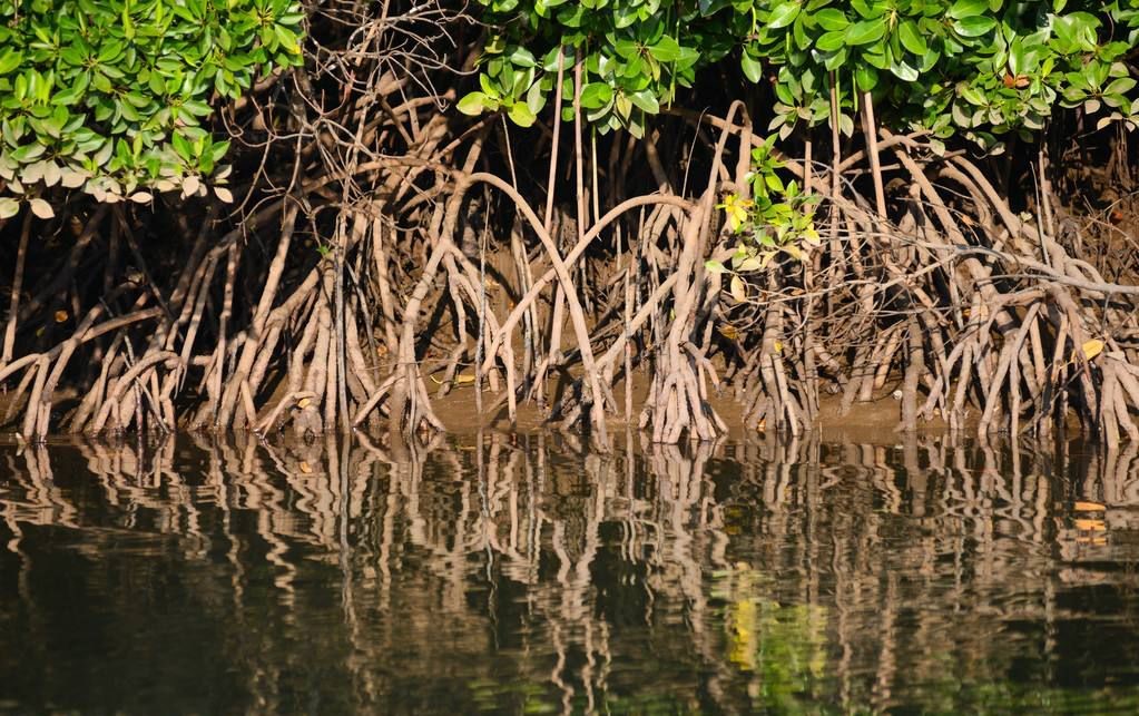种子类植物如红树林、海草。红树的树皮和木材是红褐色的,因而得名。红树的繁殖十分奇特,它的种子是在大树上发育成熟后掉在泥土之中生根的,这就是植物中非常罕见的”胎生”现象。它们生长在热带、亚热带地区海水涨潮与退潮被淹没的海滩部分,涨潮时被海水淹没成为海底森林,退潮时又露出水面成为海滩的保护者。发达的根系使得红树可以在不易生长植物的海滩滩涂之中稳稳扎根,在被海水淹没的时候也能生长,并且供各种动物栖息,成为海洋和陆地之间的独特风景和天然屏障。
