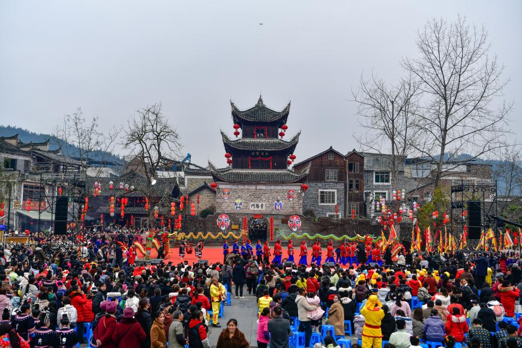 这是贵州锦屏隆里“村晚遇元宵·来隆里玩花脸龙”活动现场(2025年2月11日摄)。新华社记者 杨文斌 摄