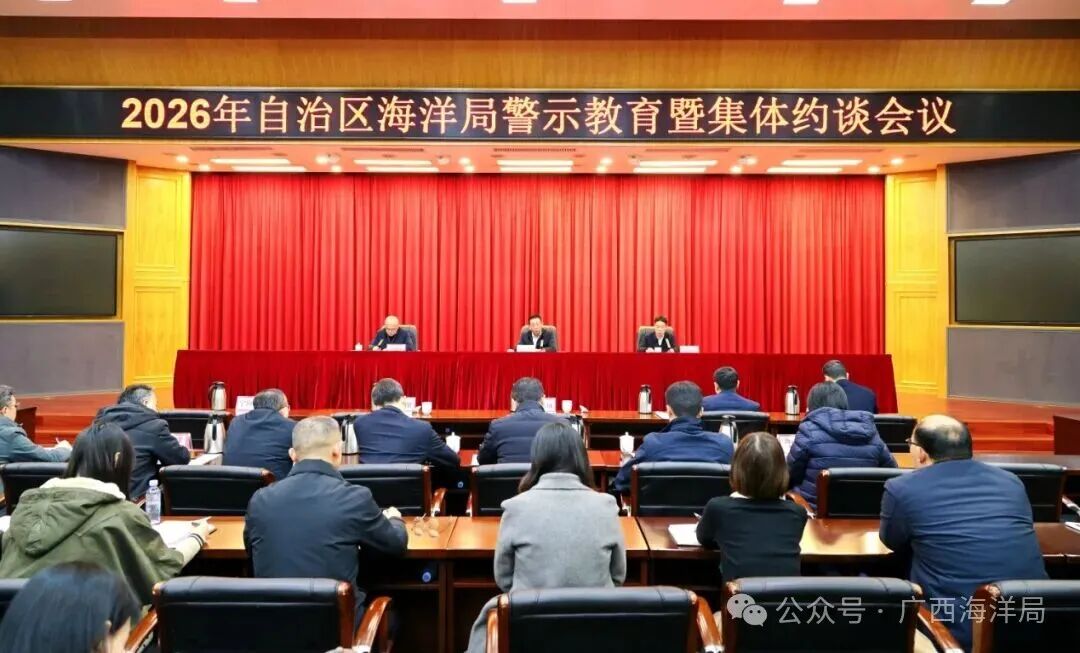 1月26日,自治区海洋局在南宁召开警示教育暨集体约谈会议,自治区海洋局党组书记、局长谢瑾瑜,自治区自然资源厅党组成员、自治区纪委监委驻自治区自然资源厅纪检监察组组长刘初刚出席会议并讲话。自治区海洋局党组成员、副局长宁向军主持会议。