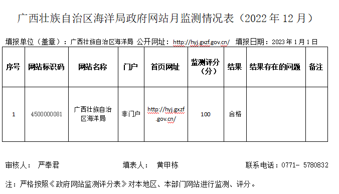广西壮族自治区海洋局政府网站月监测情况表(2022年12月)